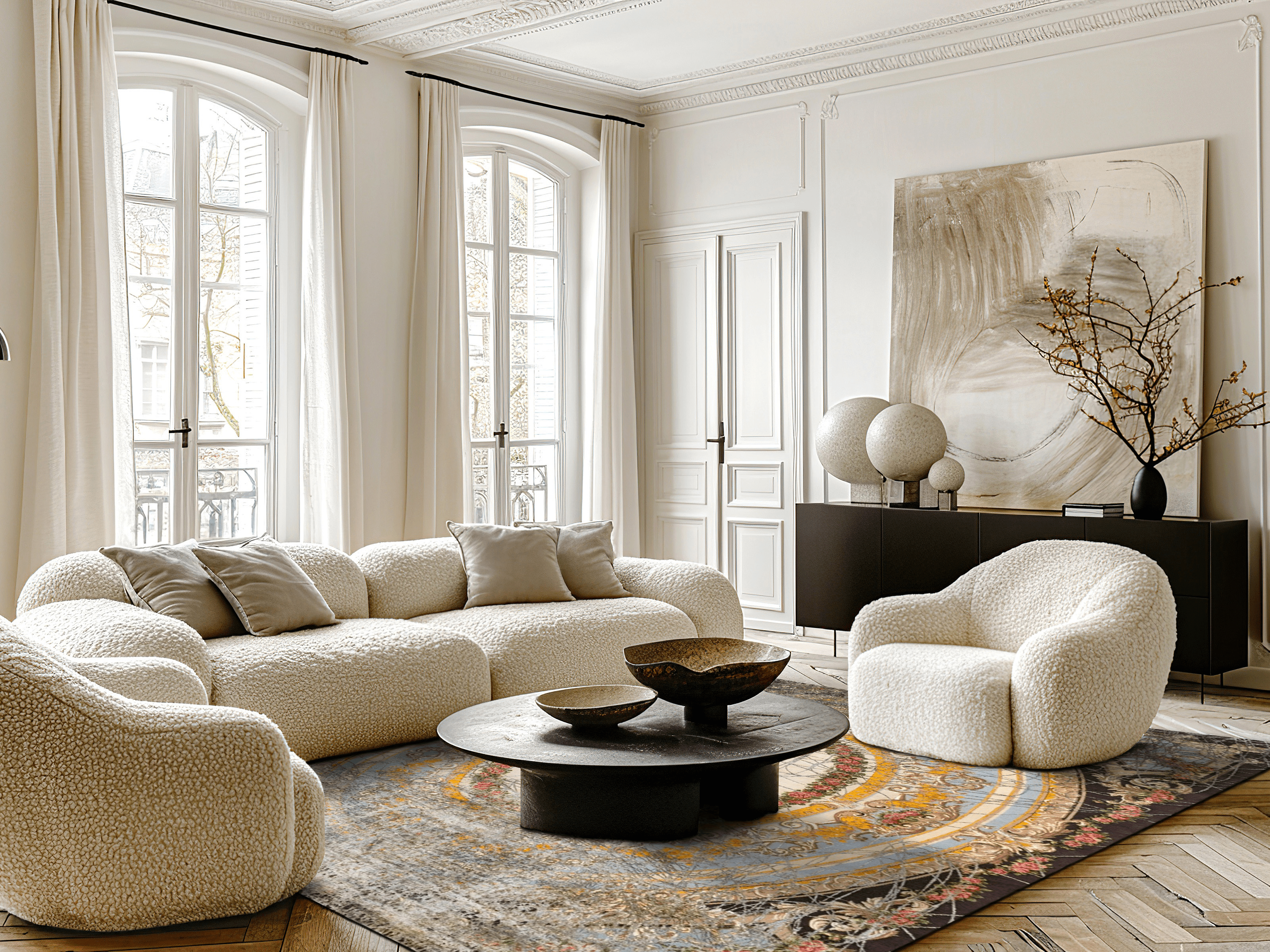 Gefertigt aus hochwertiger Hochlandwolle und edler Naturseide, wird jeder Teppich in sorgfältiger Handarbeit geknüpft und ist ein Unikat. Der Doux Secret Jointed – Savonnerie Surprise eignet sich ideal für Wohn- und Objektbereiche, in denen Kunst, Farbe und raffinierte Details stilvoll kombiniert werden sollen.
