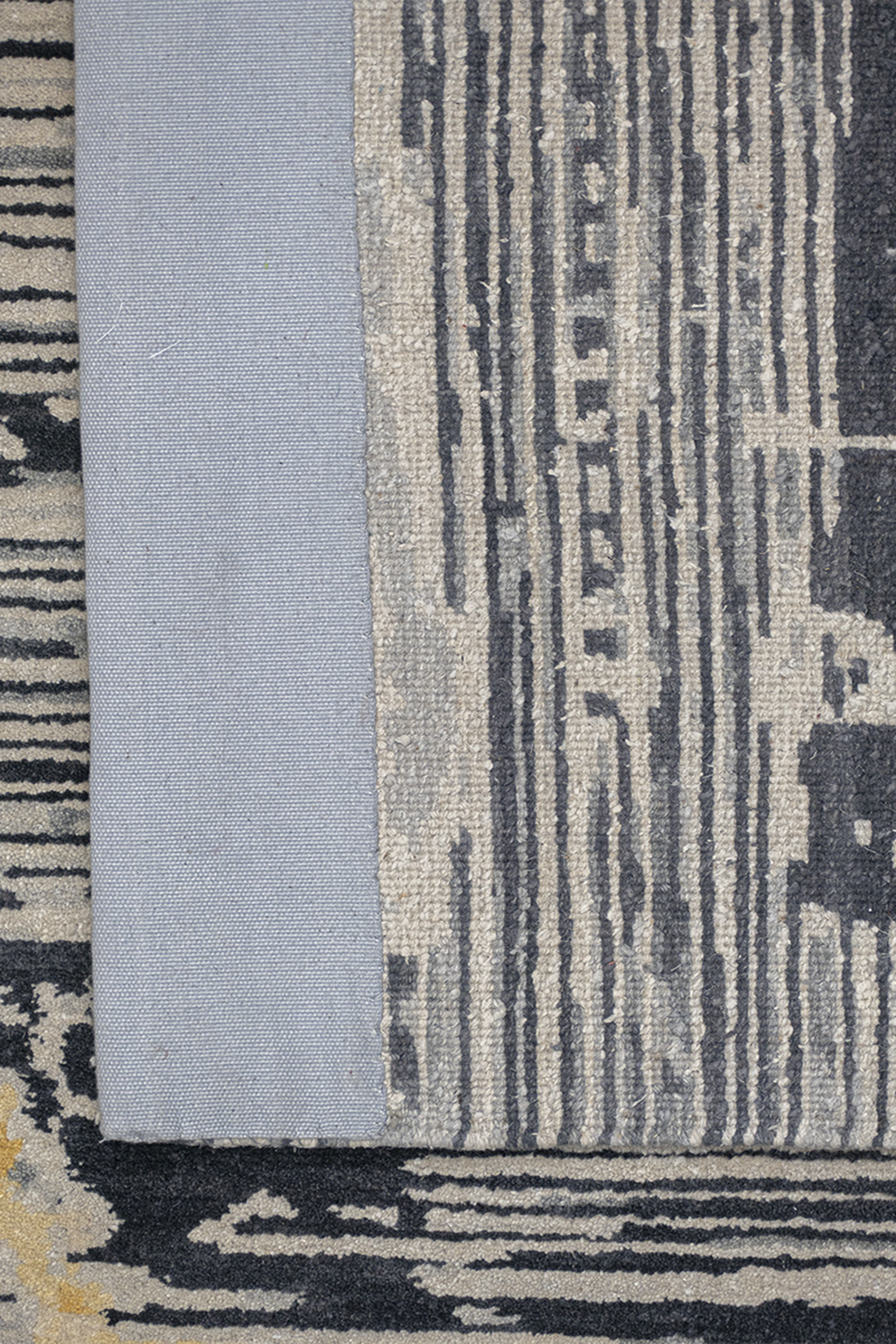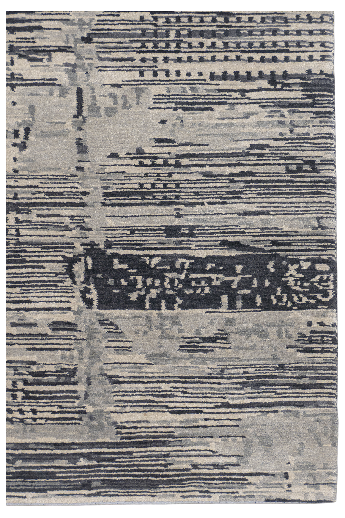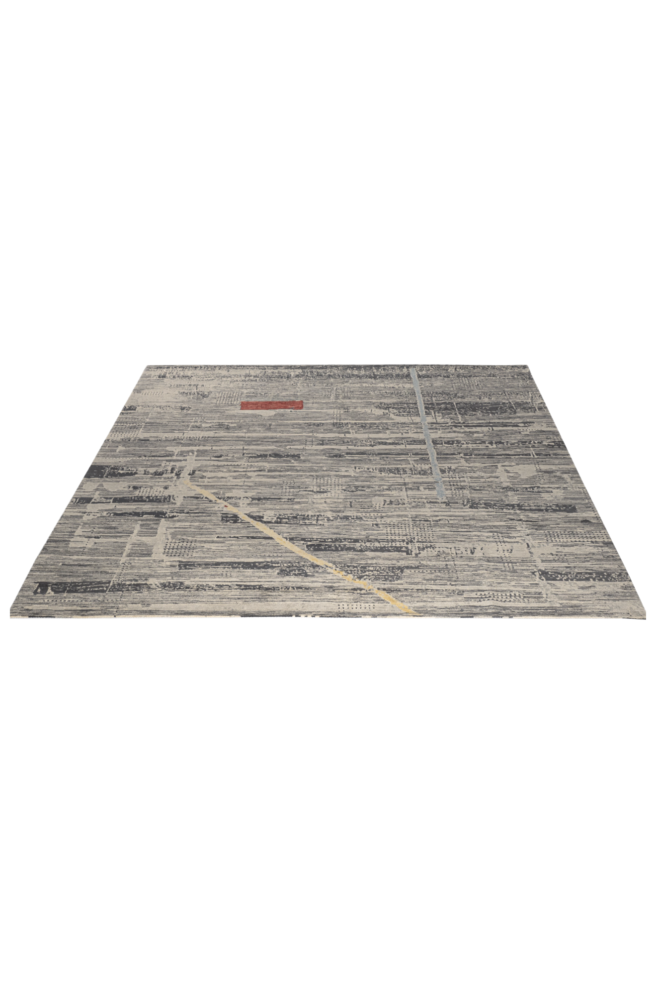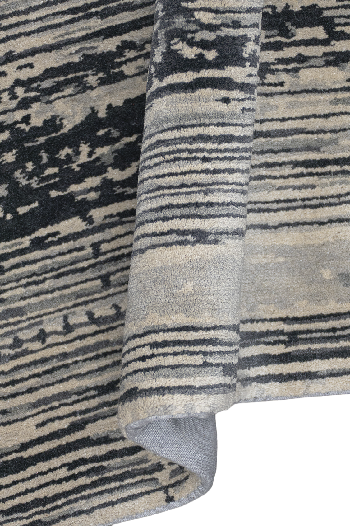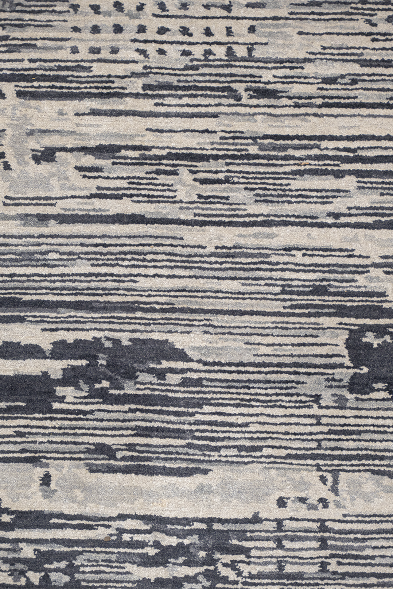 Dieser elegante Designer Teppich wurde in Nepal von Meister-Knüpferinnen von Hand geknüpft. Die Zeichnung wirkt wie eine Verschmelzung aus unterschiedlichen Grautönen. Durch die sanften Farben wirkt der Teppich ruhig und elegant. Die farbigen Details verleihen dem Teppich das gewisse Etwas und werten diesen besonders auf. Das Unikat besteht aus bester, von Hand versponnener Hochlandwolle und feinster, von Hand versponnener, chinesischer Naturseide. Der Teppich hat eine sehr feine Knüpfung und ist durch die Verwendung bester Materialien außerordentlich strapazierfähig.