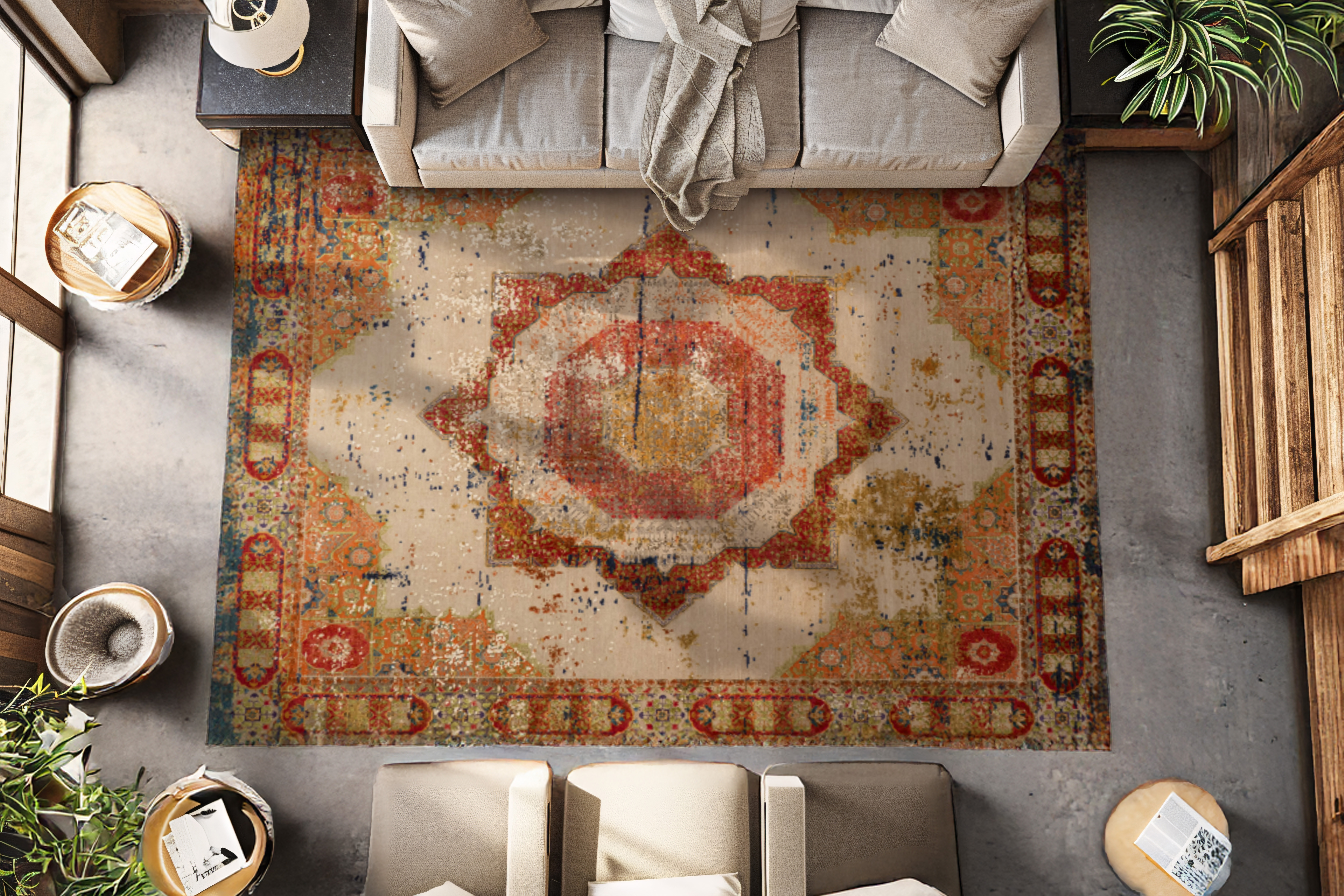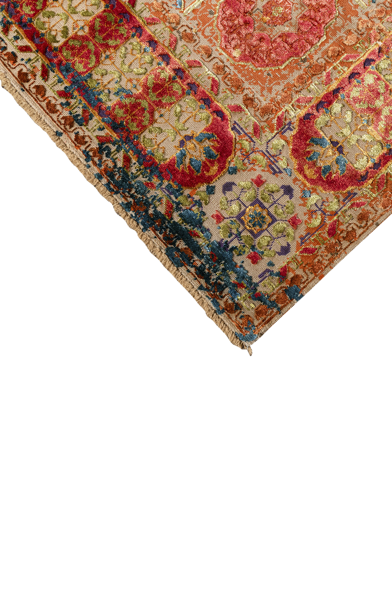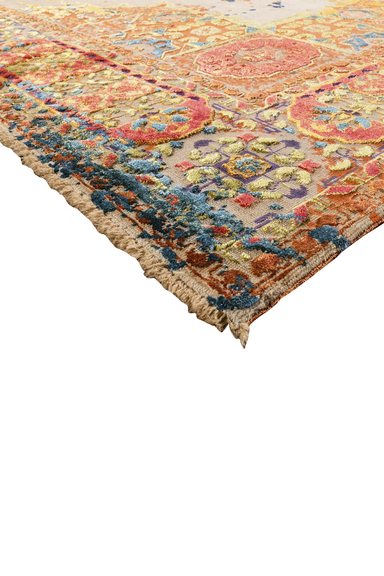 Der Jan Kath Mamluk Elswick Charles verbindet die majestätische Ornamentik der historischen Mamluk-Teppiche mit zeitgenössischem Designanspruch. Das sorgfältig komponierte Muster aus geometrischen und floralen Elementen erzeugt eine klare Struktur, die gleichzeitig Tiefe und Dynamik vermittelt.