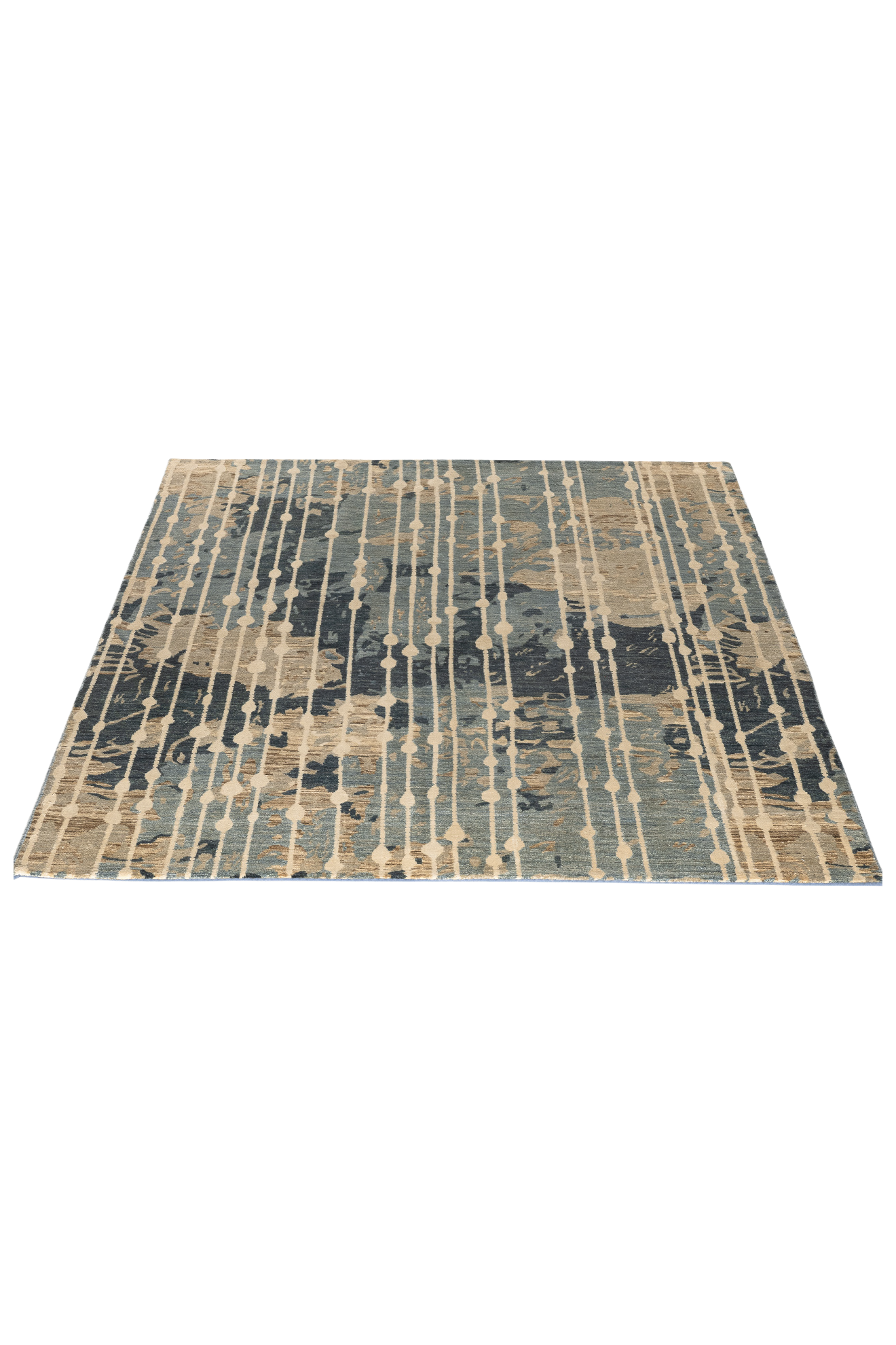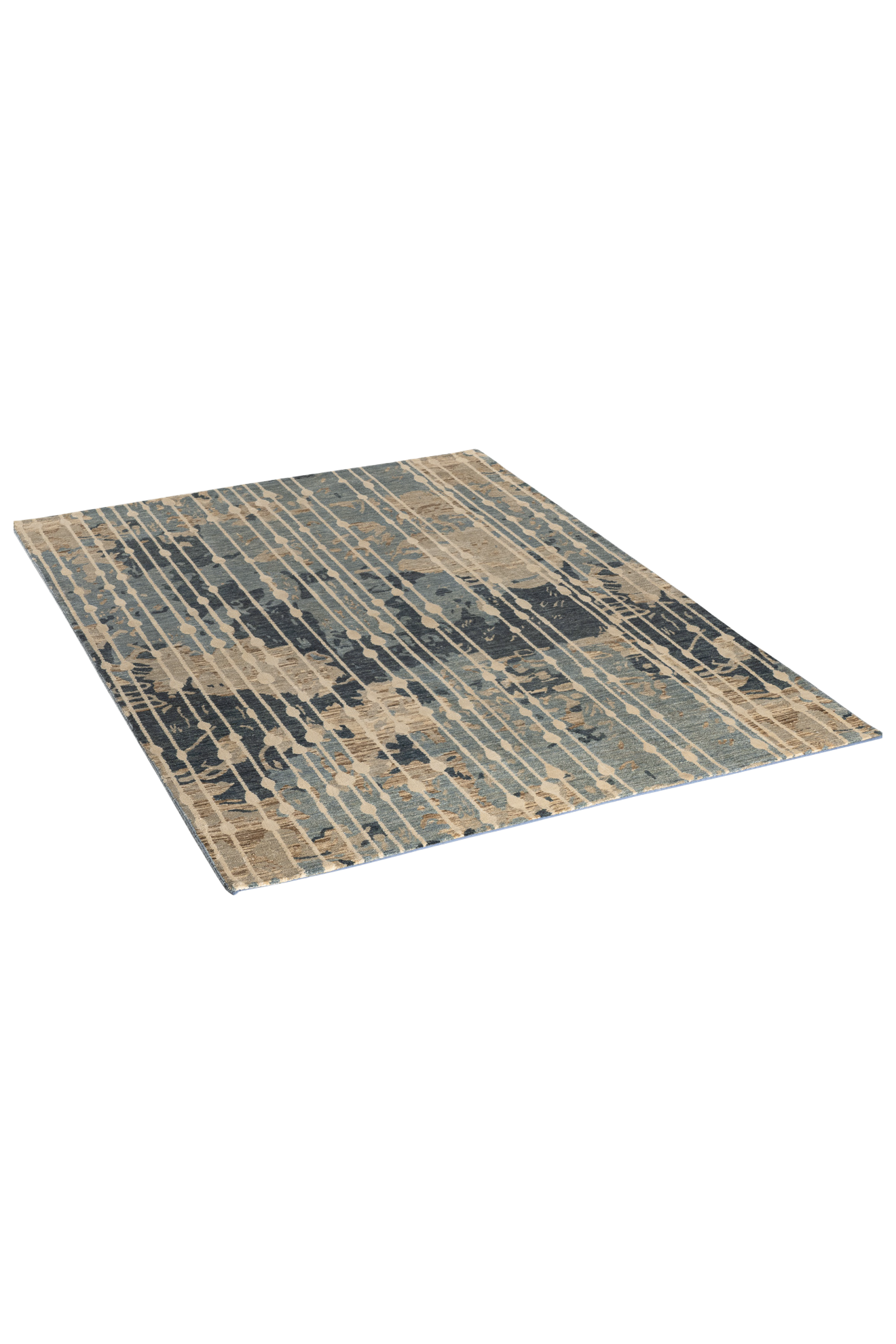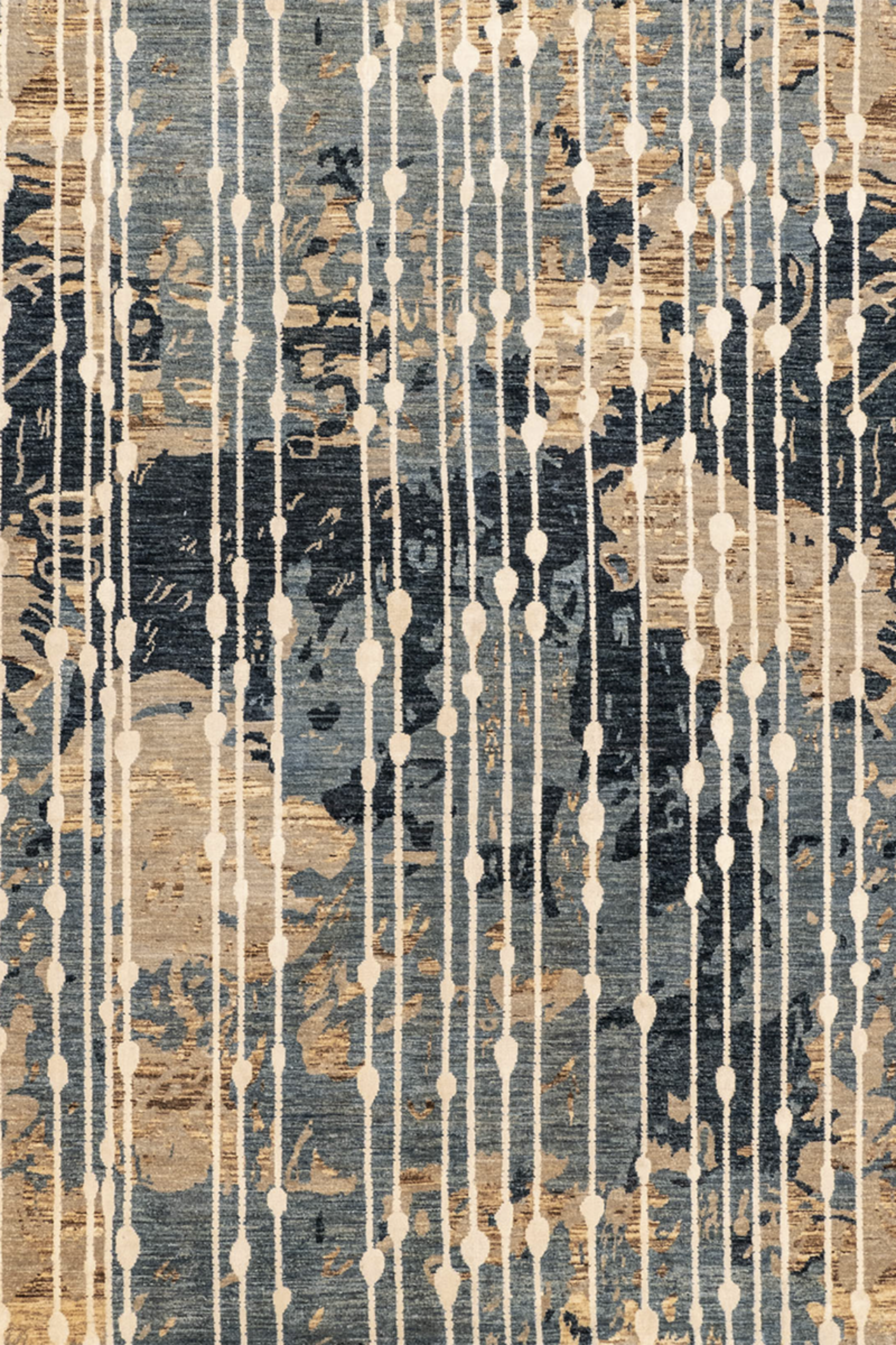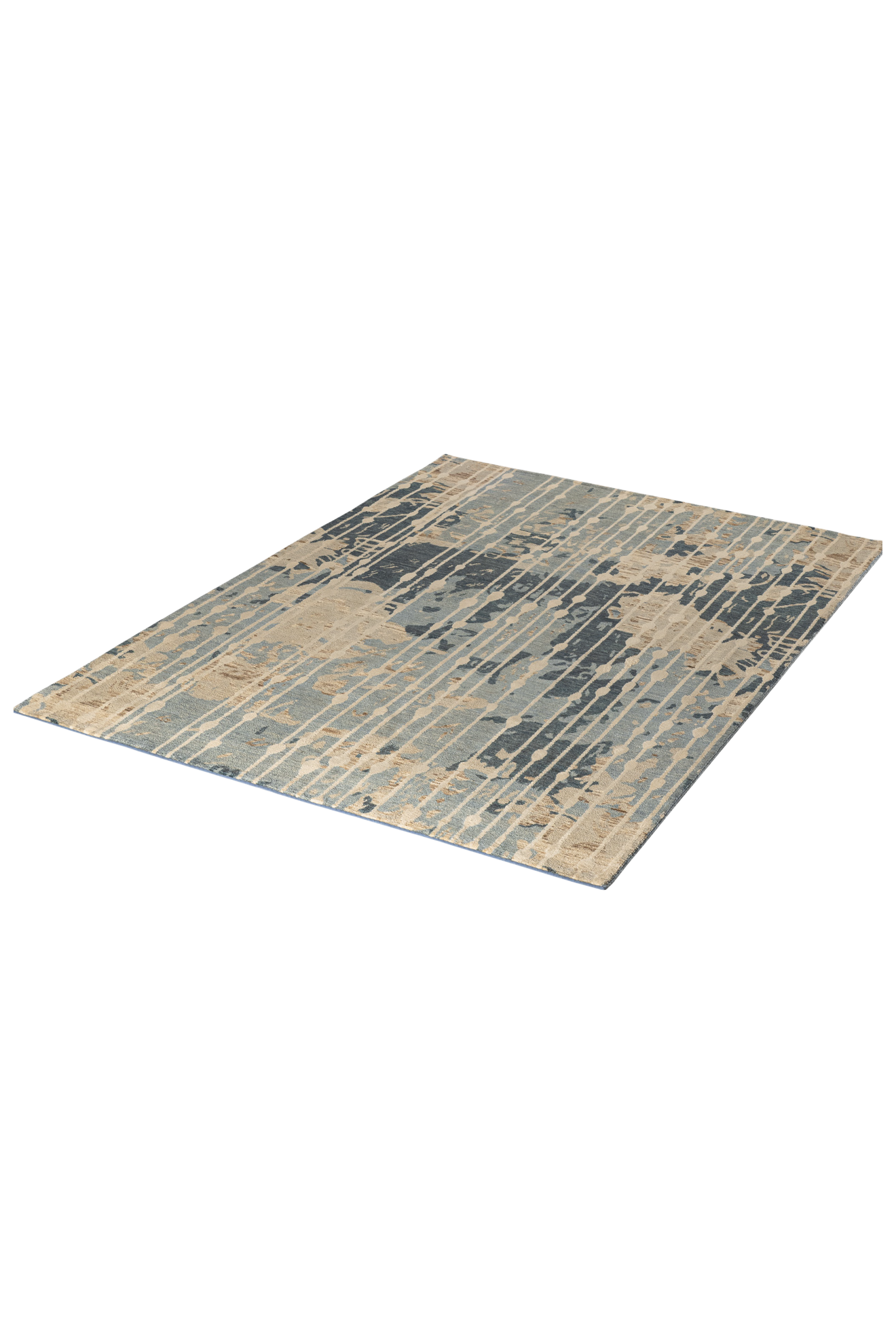 Elaris ist Teil der Jordan Collection – handgeknüpft aus hochwertiger Hochlandwolle und glänzender Naturseide. Das Design lebt von seiner vertikalen Dynamik: Streifenähnliche Linien treffen auf ein abstraktes, vielschichtiges Muster in Blau-, Sand- und Ockertönen. Der seidenmatte Glanz verleiht dem Teppich eine lebendige Tiefenwirkung – wie Licht, das durch fallenden Regen auf eine Landschaft trifft. Elaris verbindet künstlerische Komposition mit textiler Handwerkskunst – ein Teppich, der Struktur und Atmosphäre zugleich ist.