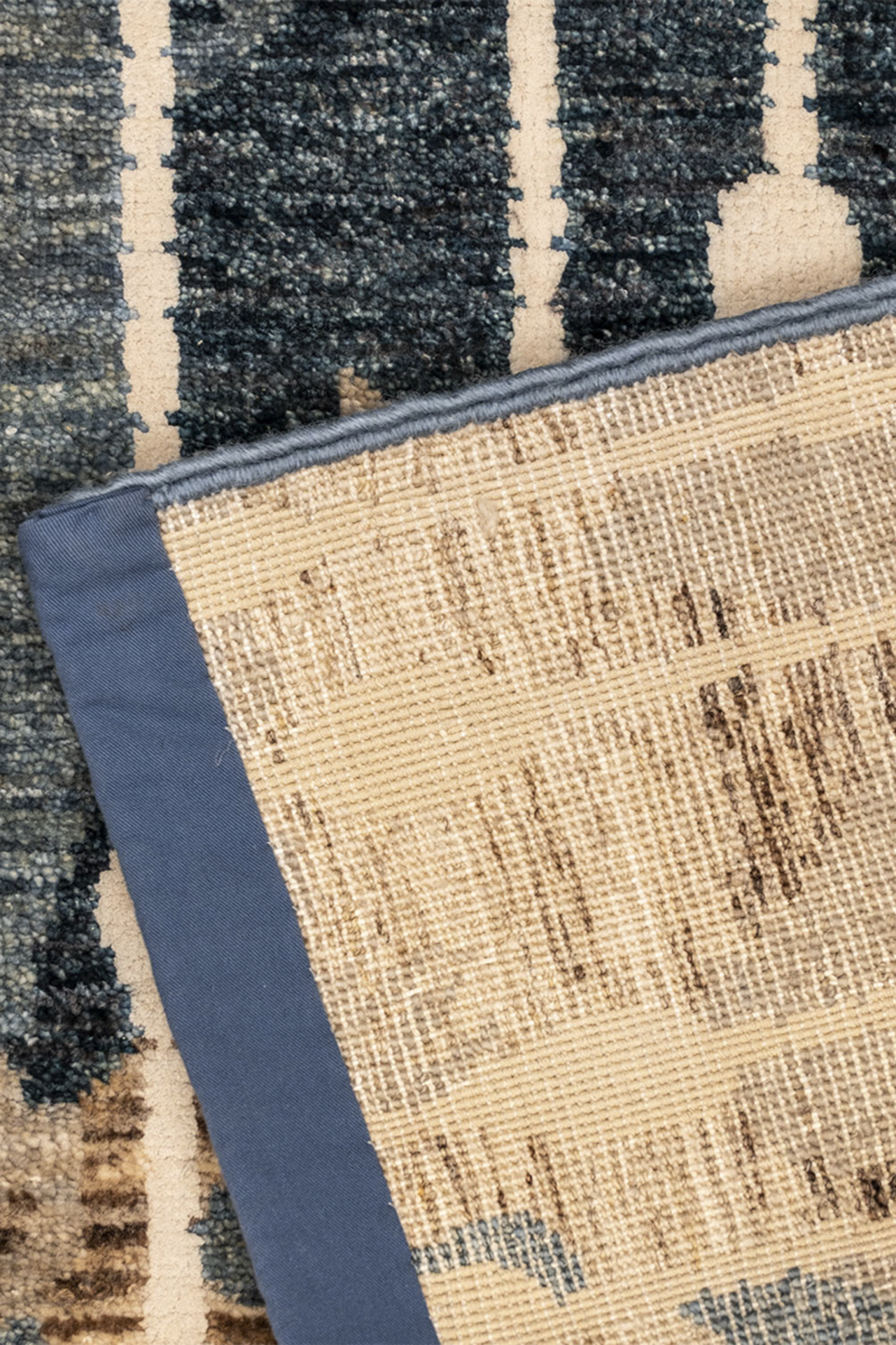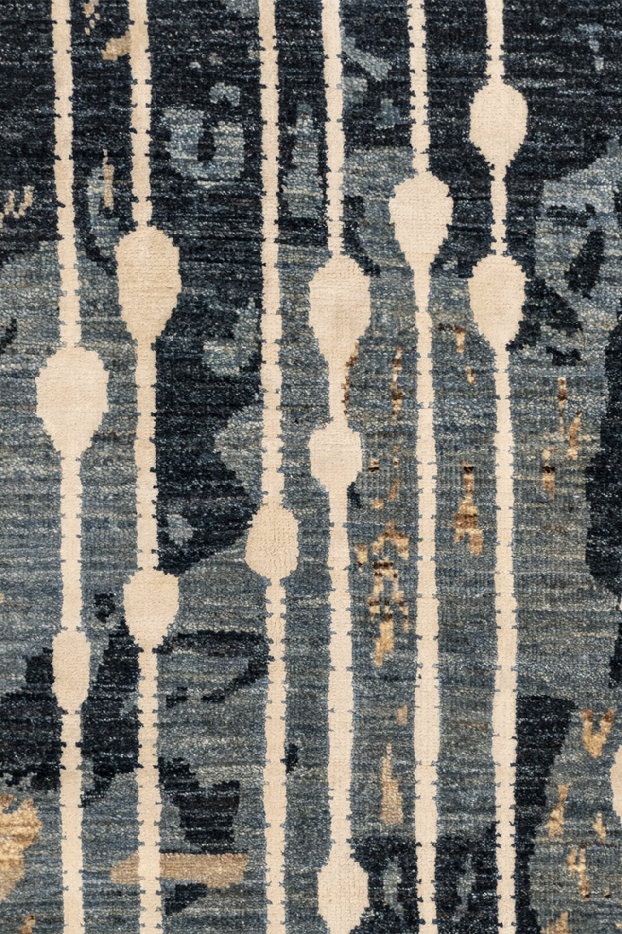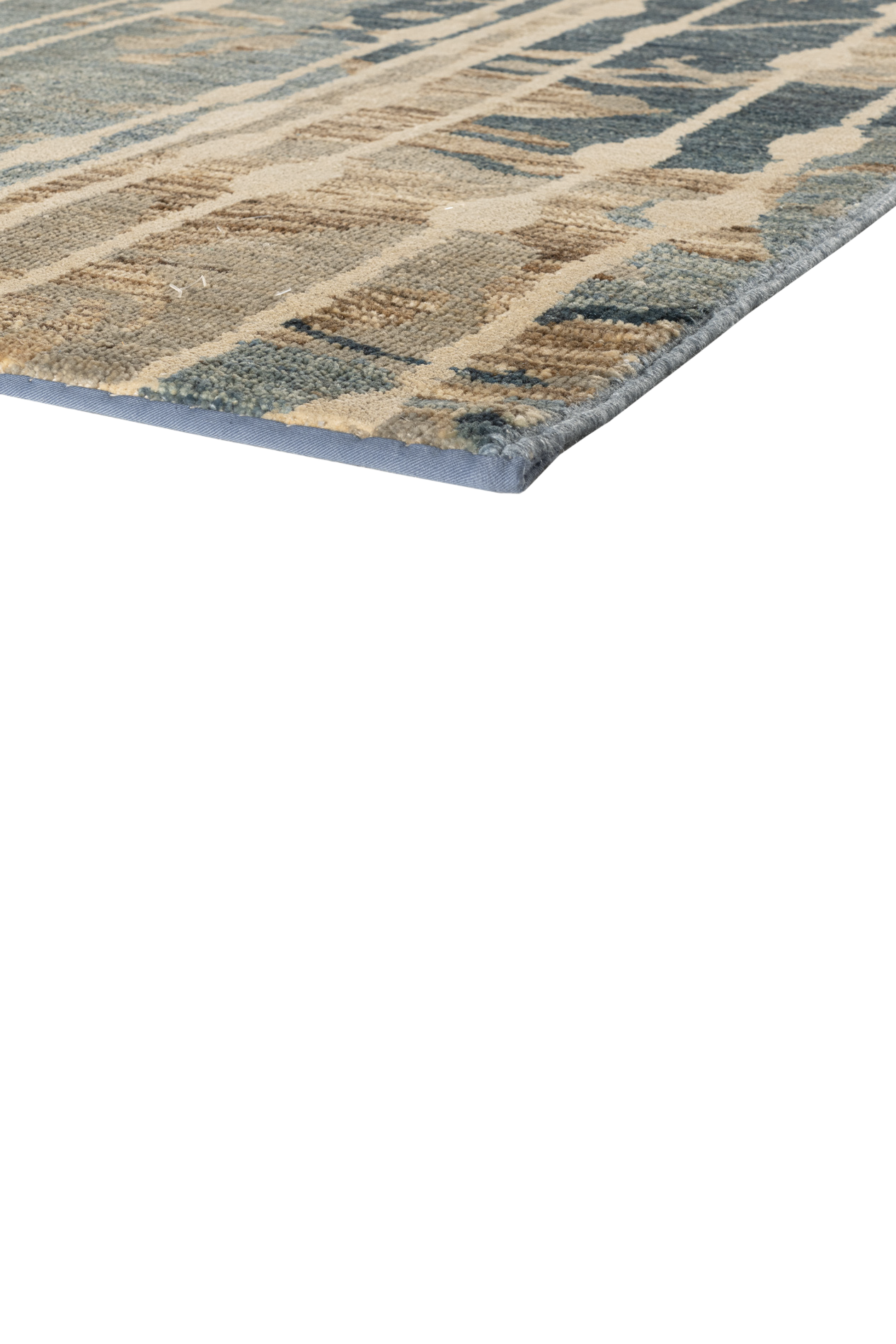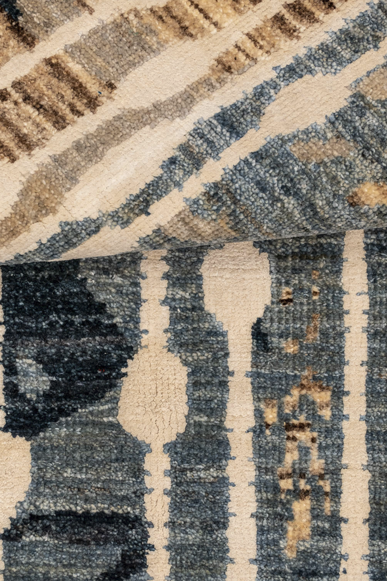 Elaris ist Teil der Jordan Collection – handgeknüpft aus hochwertiger Hochlandwolle und glänzender Naturseide. Das Design lebt von seiner vertikalen Dynamik: Streifenähnliche Linien treffen auf ein abstraktes, vielschichtiges Muster in Blau-, Sand- und Ockertönen. Der seidenmatte Glanz verleiht dem Teppich eine lebendige Tiefenwirkung – wie Licht, das durch fallenden Regen auf eine Landschaft trifft. Elaris verbindet künstlerische Komposition mit textiler Handwerkskunst – ein Teppich, der Struktur und Atmosphäre zugleich ist.