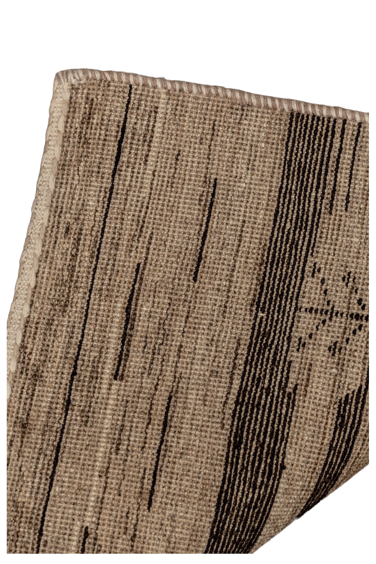 Der handgeknüpfte Teppich „Wüstenstrauch“ verkörpert die kraftvolle Ruhe der Natur. In zarten Abstufungen von Braun, Grau und Beige präsentiert sich die Oberfläche wie eine Landschaft aus Stein, Erde und Wüstengestrüpp – lebendig und dennoch beruhigend. Kleine stilisierte Pflanzenelemente verleihen dem Design eine poetische Tiefe.