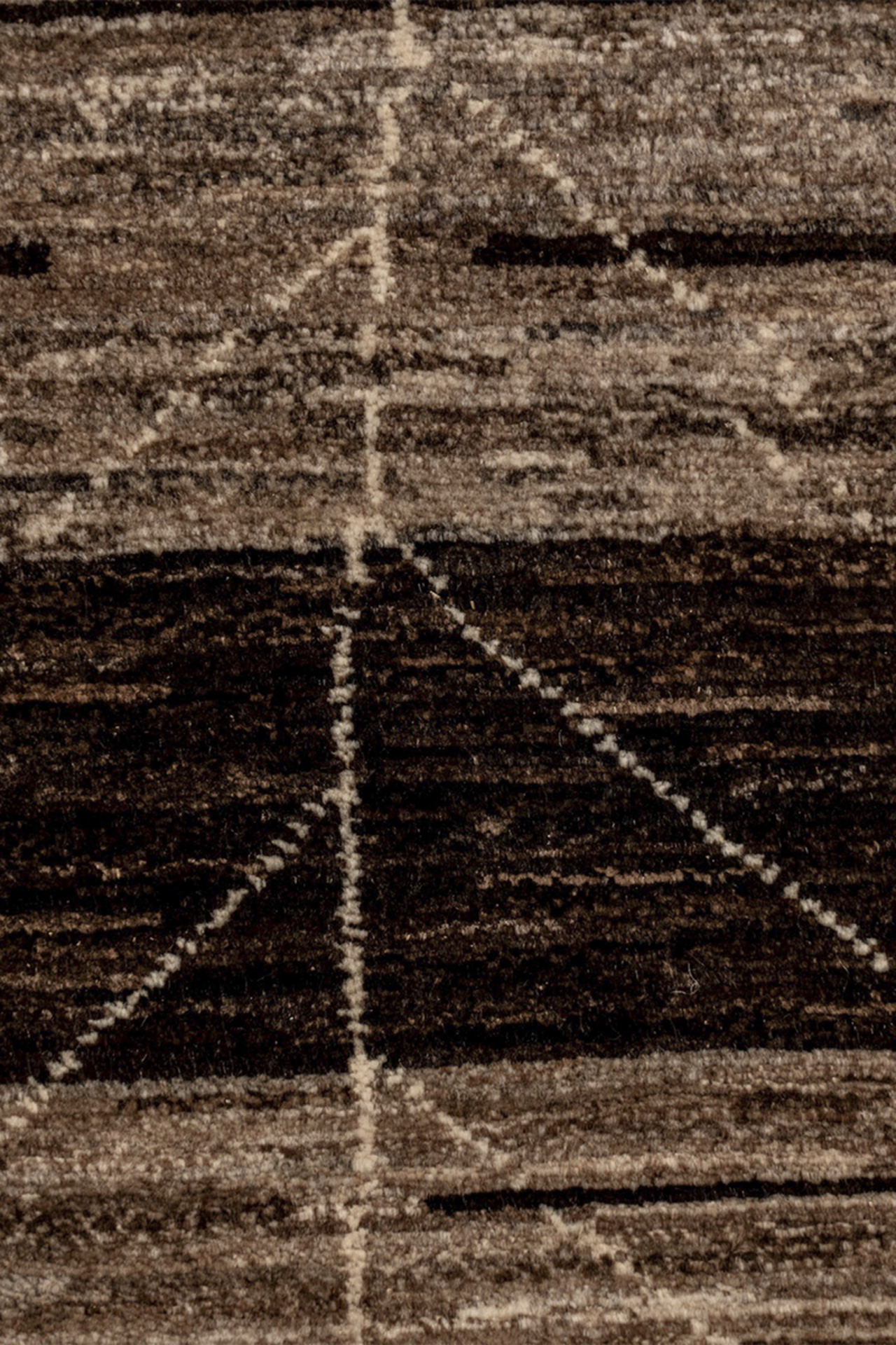 Die verwendete naturbelassene Schurwolle stammt direkt vom Schaf – ungefärbt und pur, so wie die Natur sie geschaffen hat. Jeder einzelne Knoten zeugt von traditioneller Handwerkskunst der Nomaden, deren Gefühl für Rhythmus und Material im Gewebe spürbar wird.