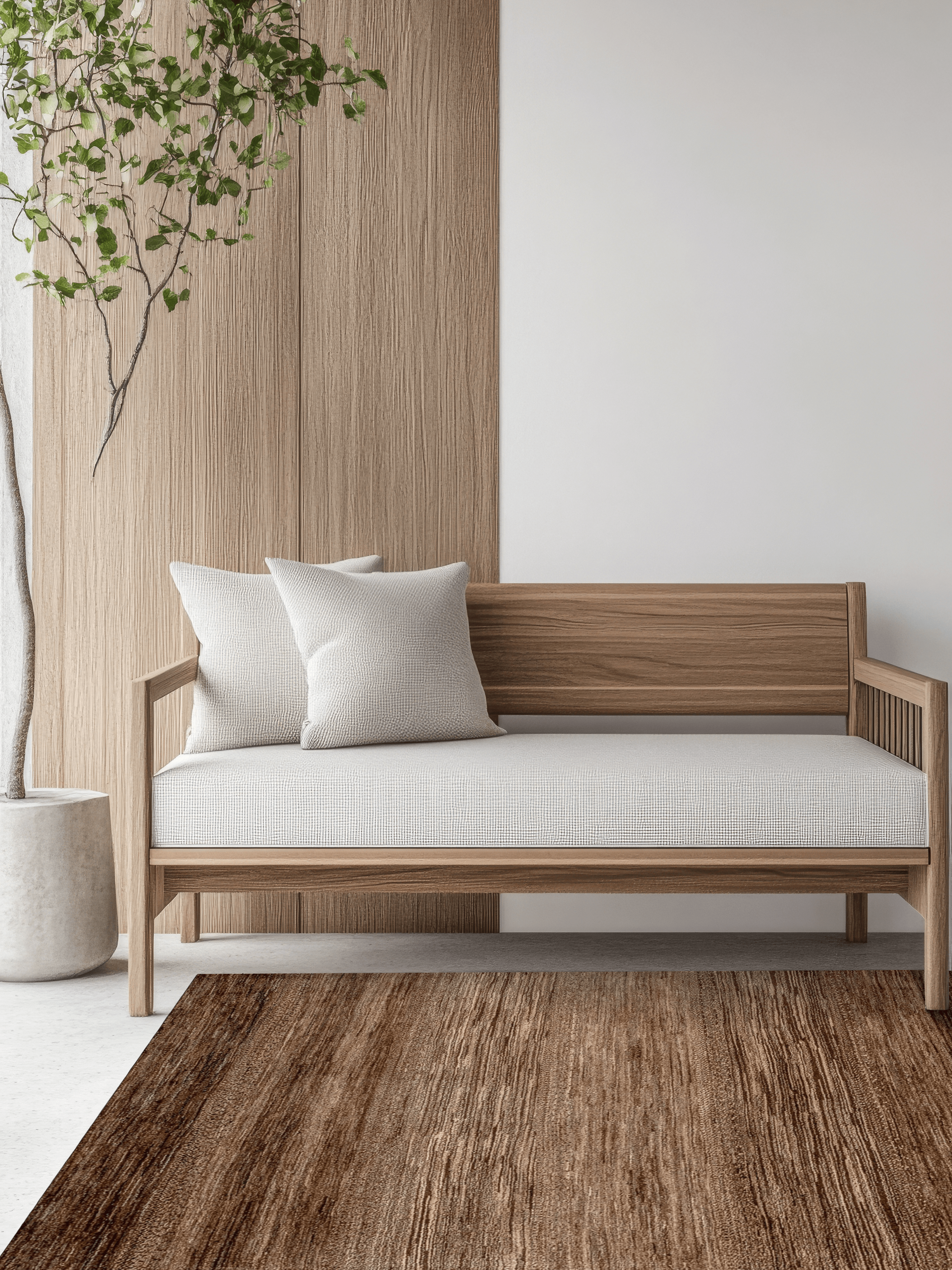 Ein Teppich wie ein flüchtiger Windhauch über warme Erde: „Sandhauch“ verführt mit seinen sanften Übergängen in Braun- und Beigetönen – ganz ohne Färbung. Die naturbelassene Schurwolle stammt von Schafen mit verschiedenfarbiger Wolle und verleiht dem Teppich seine charakteristische, lebendige Struktur. Die reduzierte Gestaltung betont das Handwerkliche und die Schönheit des Materials.