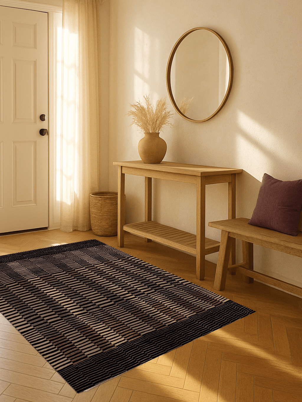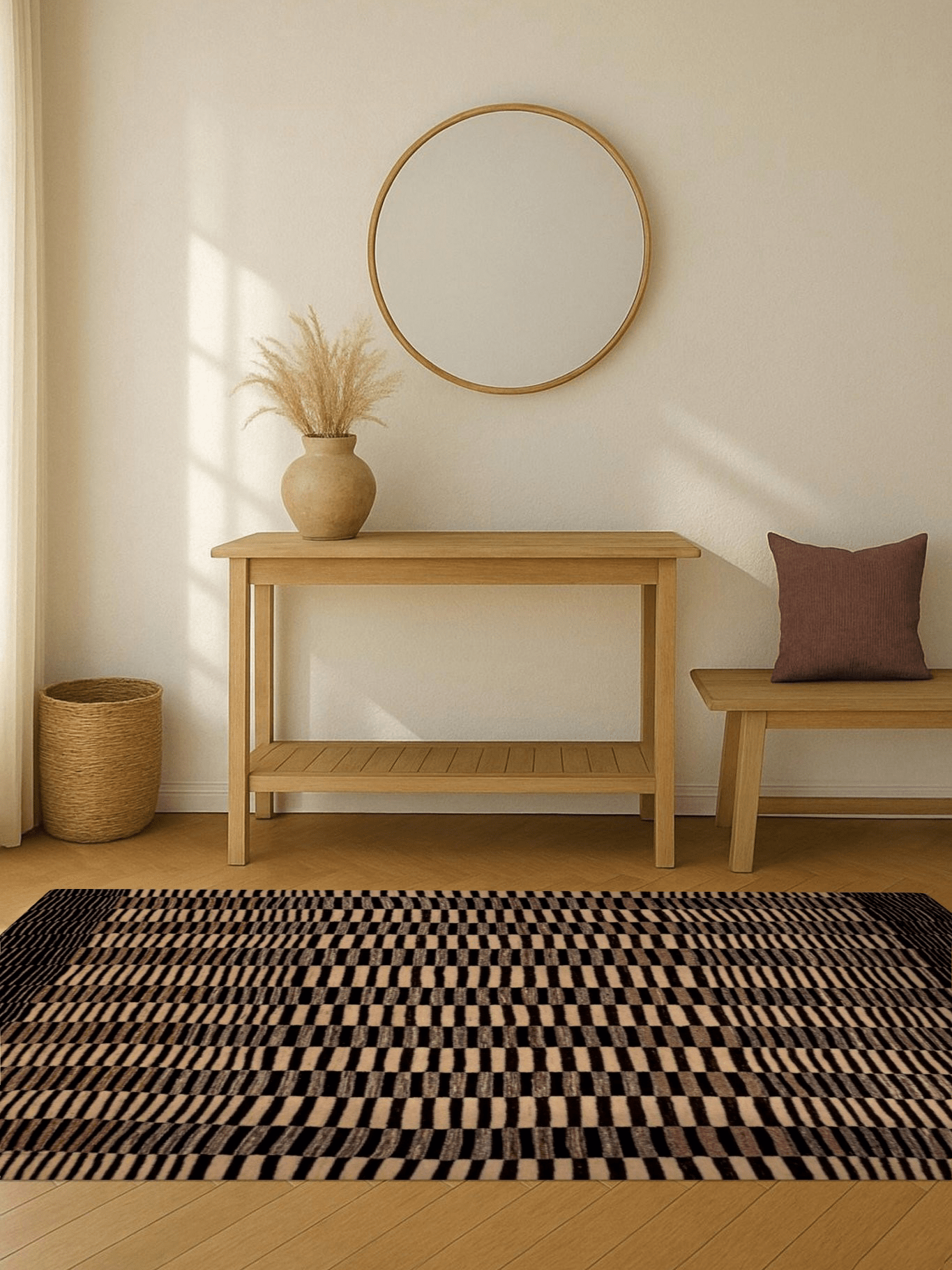 Dieser wunderschöne Nomadenteppich stammt von iranischen Nomaden aus dem Süd-Iran und spiegelt die ruhige Schönheit der Wüste wider. Das Design erinnert an die sanften Wellen des Sandes, die der Wind in diesem kargen Gebiet formt. Diese inspirierenden Muster wurden von einer Nomadenfrau in liebevoller Handarbeit umgesetzt, wobei sie nur die beste, von Hand versponnene Zagroswolle verwendete. Die ungefärbte Wolle, die nur nach ihren natürlichen Wollfarben sortiert wurde, verleiht dem Teppich seine authentische, natürliche Ausstrahlung. Dank des hohen Restfettgehalts der Schurwolle ist dieser Teppich besonders strapazierfähig, pflegeleicht und schmutzresistent – ein wahres Unikat, das die Handwerkskunst und die kulturelle Tradition der iranischen Nomaden verkörpert.