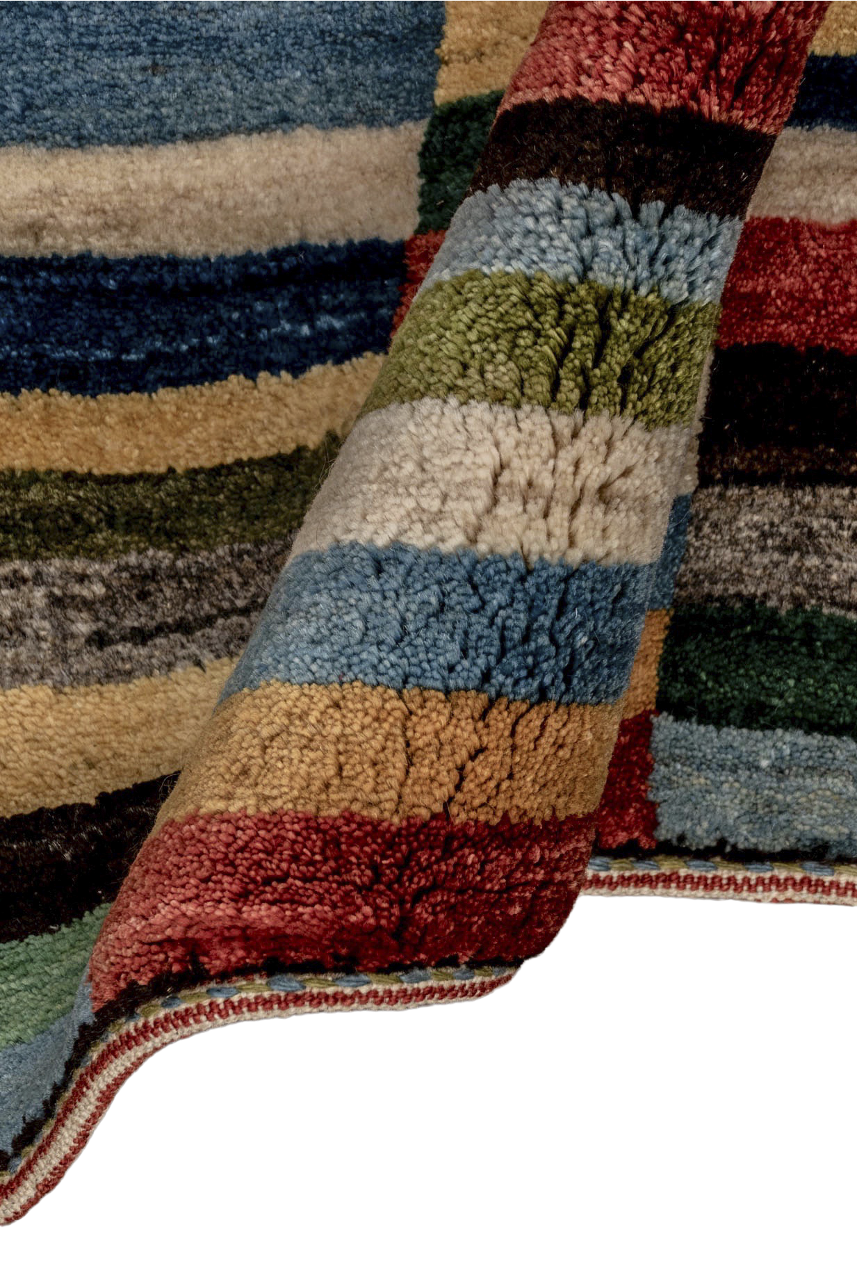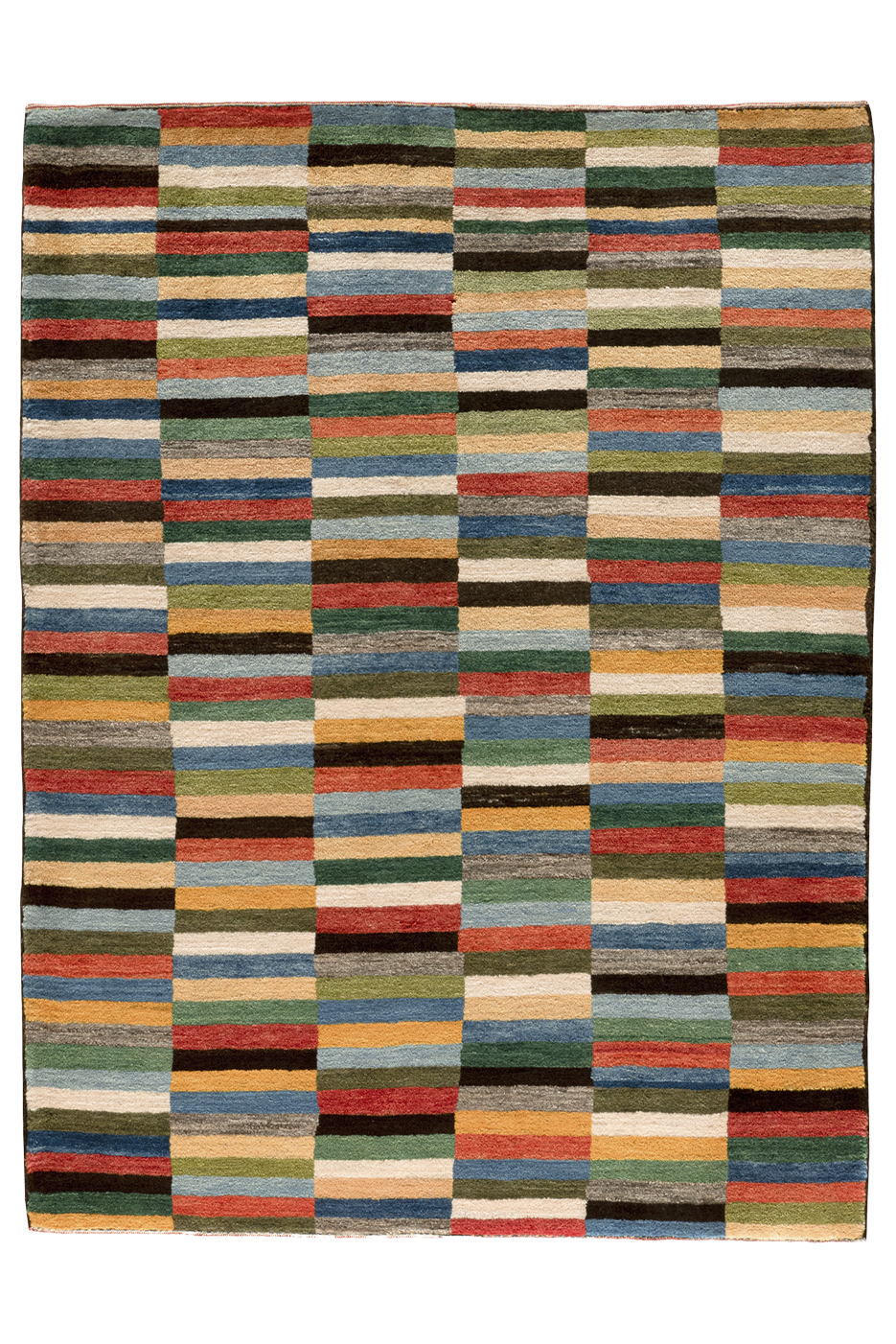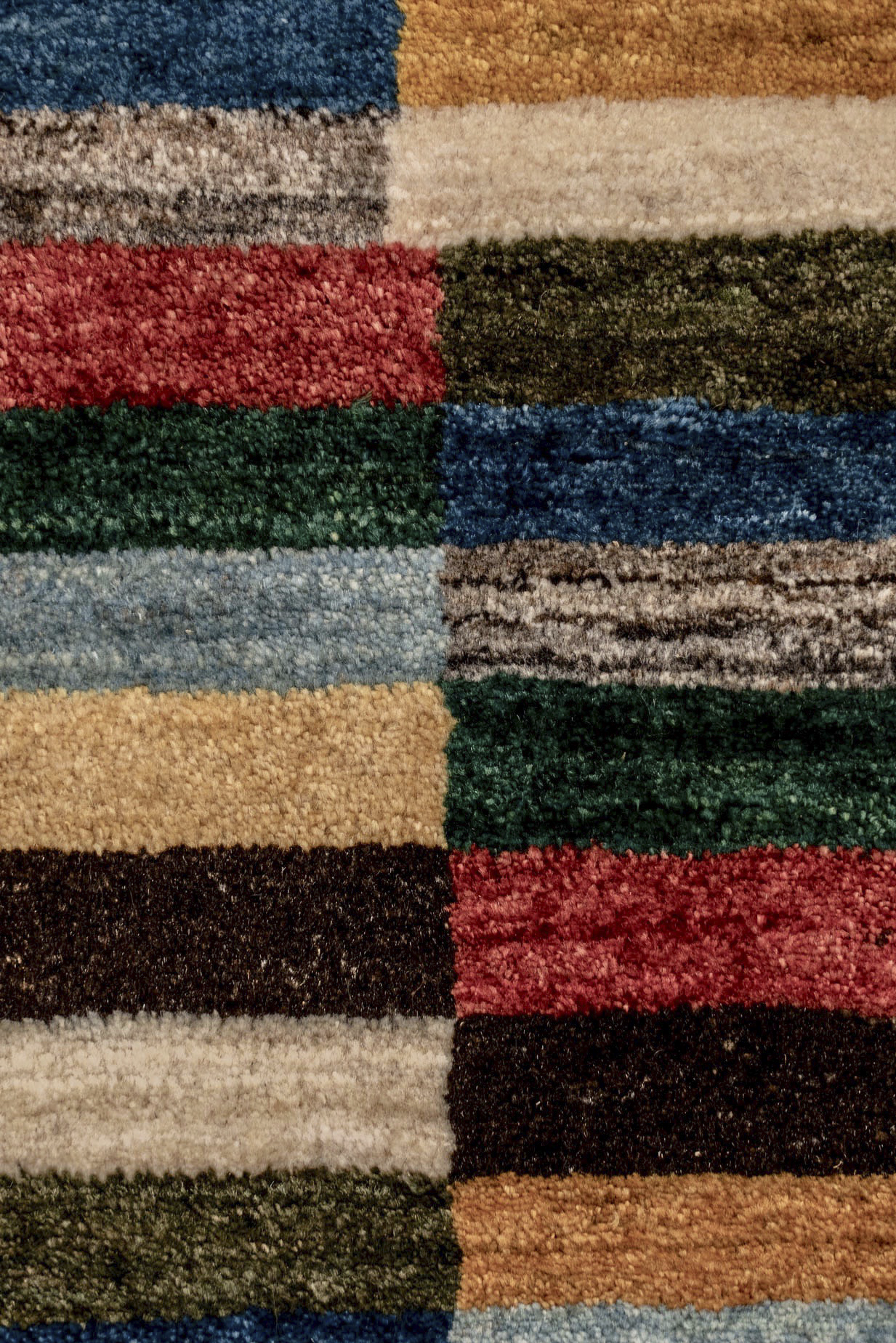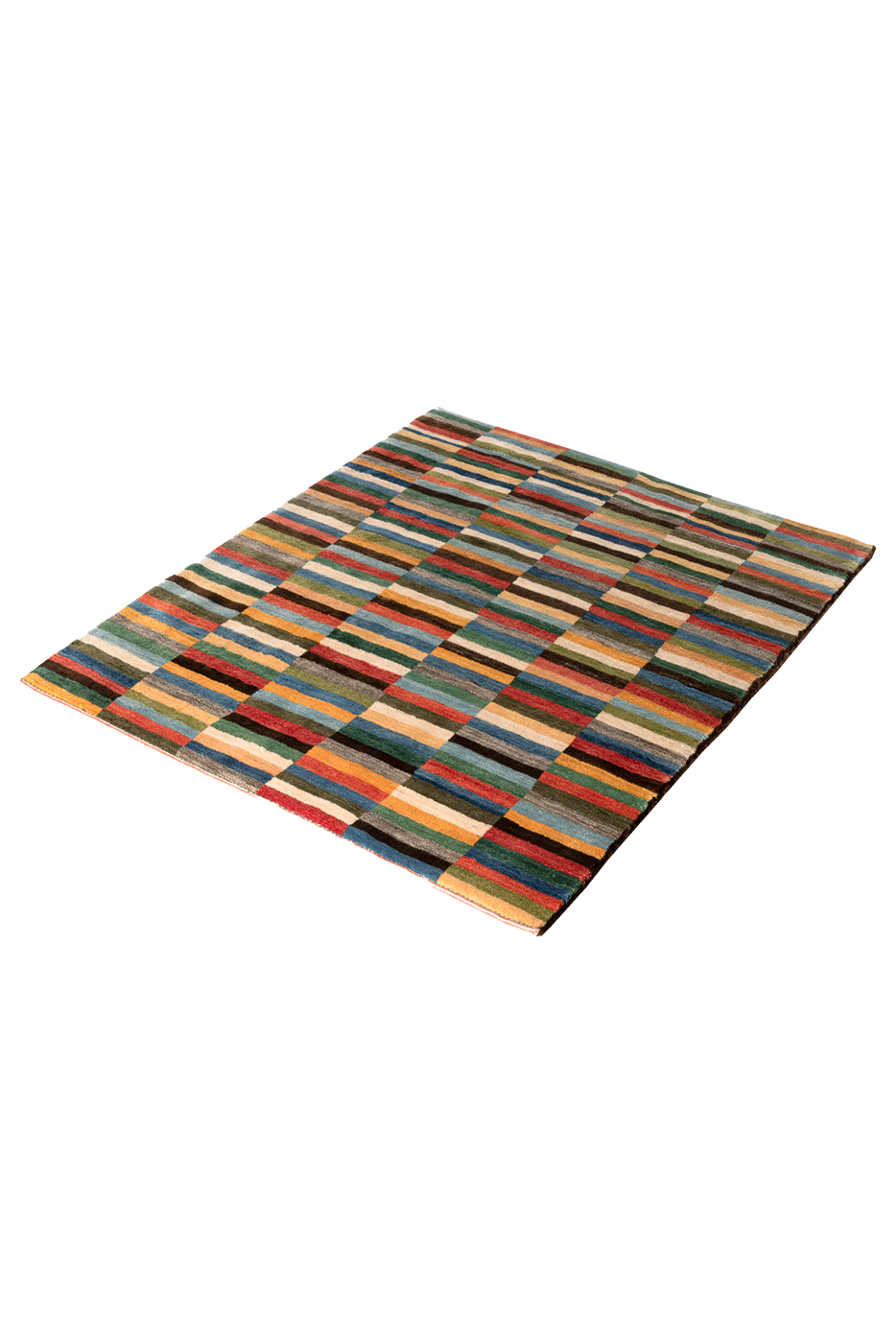 Wie ein lebhaftes Musikstück aus Farben offenbart der Gabbeh-Teppich Farbtanz die Kunstfertigkeit nomadischer Knüpferinnen aus dem iranischen Fars-Gebiet. Aus naturgefärbter Hochlandwolle gefertigt, entfaltet sich auf diesem Unikat ein dynamisches Spiel aus Streifen und Farbtönen – jeder von Hand gefärbt mit natürlichen Essenzen aus Pflanzen, Rinden und Erde.