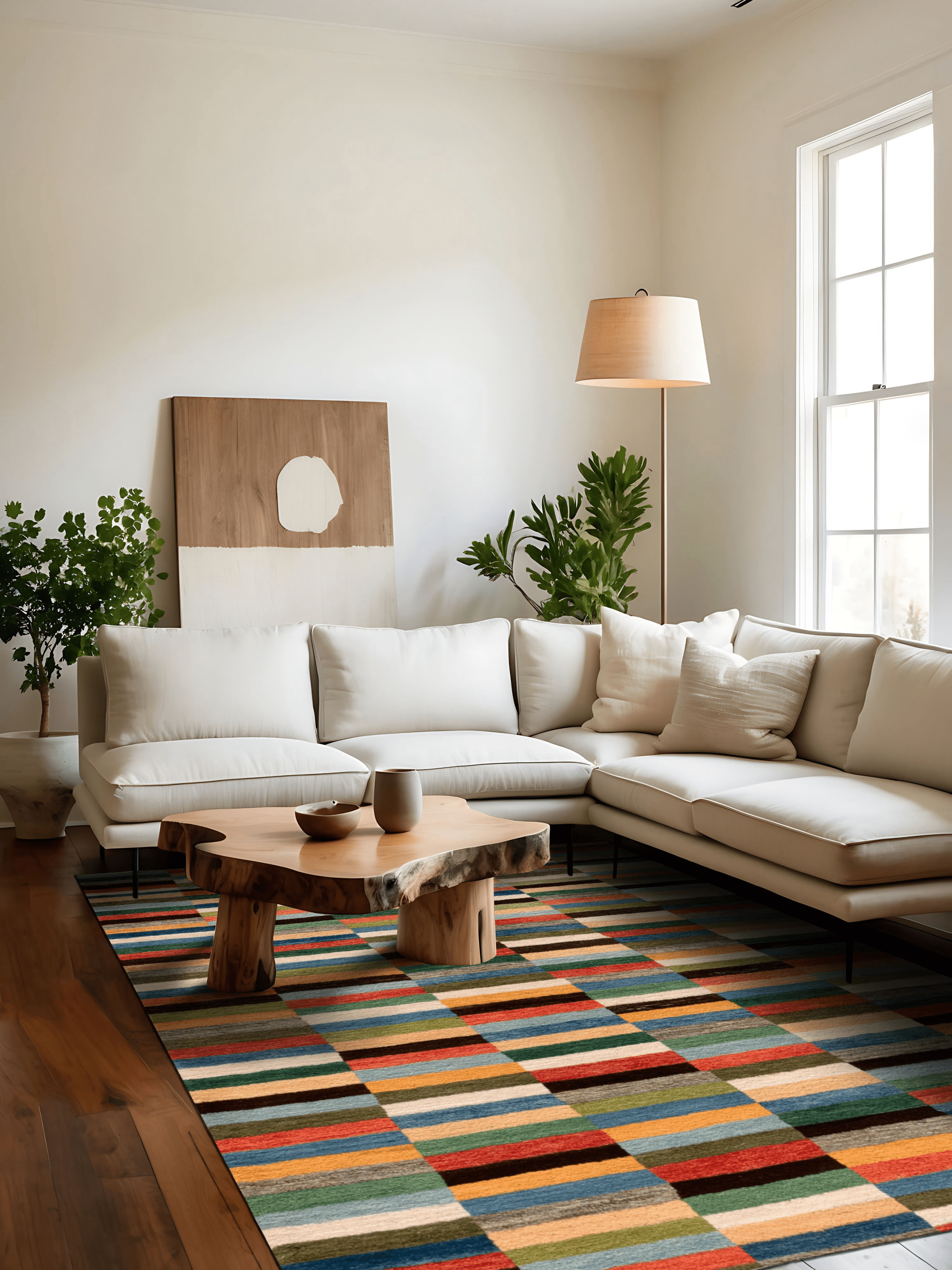 Der Rhythmus der Farben, von leuchtendem Rot über tiefes Blau bis hin zu erdigen Grüntönen, lässt diesen handgeknüpften Teppich wie ein tanzendes Gemälde wirken – voller Energie, Tiefe und Lebensfreude. Trotz seines expressiven Ausdrucks bleibt Farbtanz durch seine harmonische Farbkomposition überraschend vielseitig und lässt sich in moderne wie auch klassische Wohnräume stimmig integrieren.
