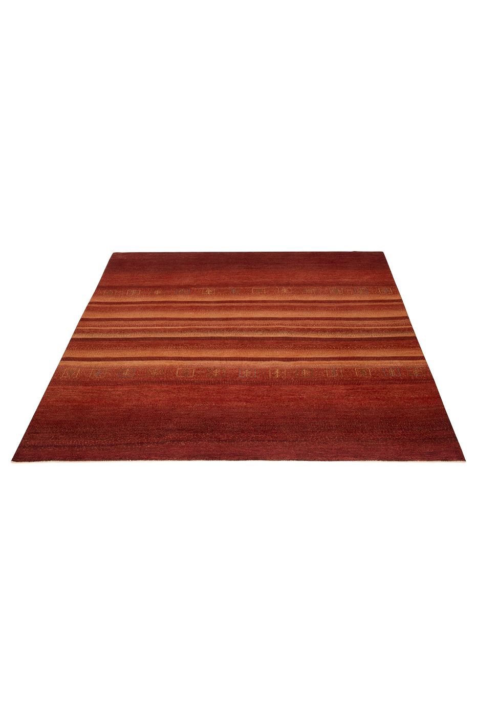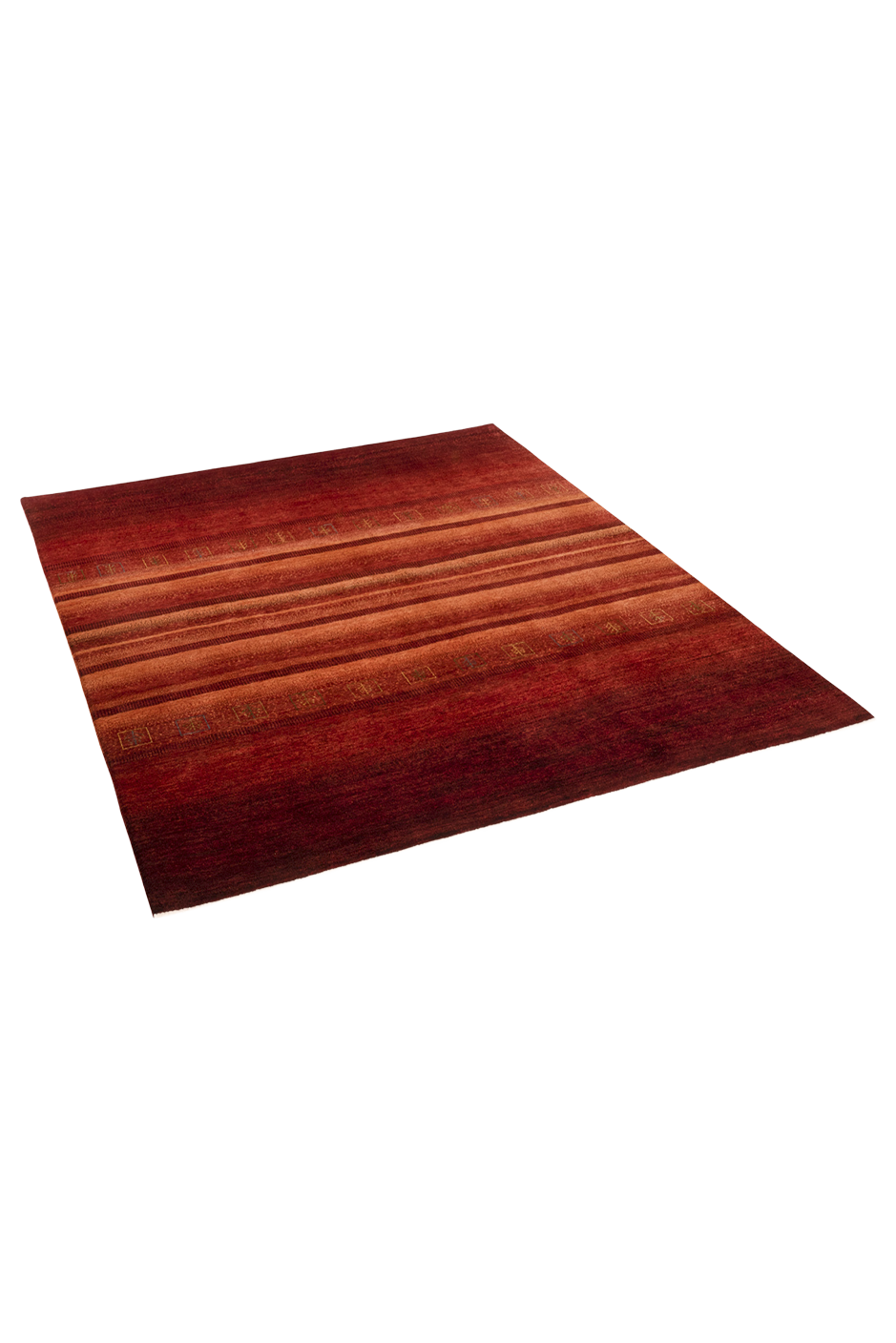 Blühender Mohn – dieser handgeknüpfte Gabbeh-Teppich ist eine Hommage an die Kraft der Naturfarben und die Tiefe traditioneller Nomadenkunst. Seine intensiv leuchtenden Rottöne erinnern an ein Mohnfeld in voller Blüte, durchzogen von fein abgestuften Nuancen, die lebendig wirken und dennoch Ruhe ausstrahlen. Kleine symbolische Motive – stilisierte Pflanzenformen in Reihen – erzählen Geschichten aus dem Leben der Nomaden. Gefertigt aus hochwertiger Schurwolle und mit natürlichen Farbstoffen gefärbt, verleiht dieser Teppich jedem Raum einen warmen, authentischen Akzent. Die weiche Oberfläche, der dichte Flor und die meisterhafte Verarbeitung machen Blühender Mohn zu einem Kunstwerk, das Langlebigkeit mit Designbewusstsein verbindet. Ideal für Wohnräume, in denen Wärme, Qualität und Ausdruck zählen.