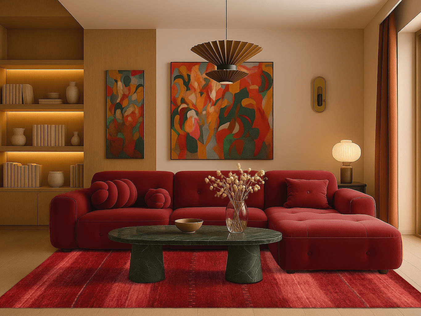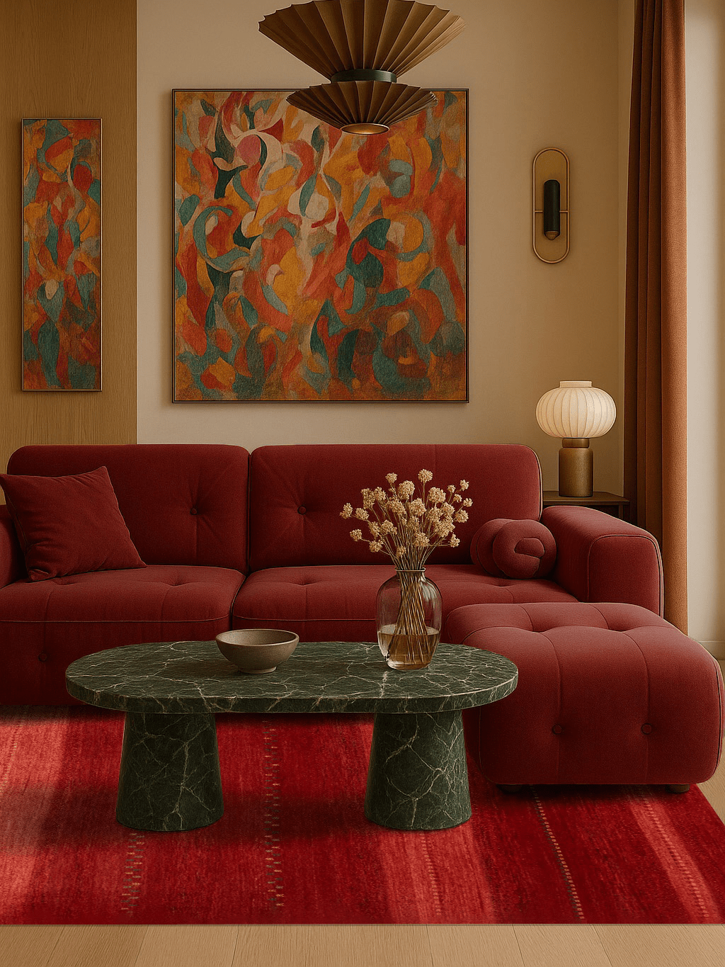 In sattem Rot, durchzogen von feinen Bordüren aus kleinen Symbolpunkten, entfaltet „Rote Mohnweide“ eine warme, fast leuchtende Ruhe. Dieser handgeknüpfte Gabbeh-Teppich ist ein echtes Unikat – gefertigt aus reiner Schurwolle, gefärbt mit pflanzlichen Naturfarben. Die subtilen Streifen und Farbverläufe erinnern an weiche Hügellandschaften im Abendlicht, an ein ruhiges Feld voller Mohnblüten. „Rote Mohnweide“ bringt Wärme, Charakter und Natürlichkeit in moderne wie klassische Interieurs – ein Teppich, der spürbar erdet und visuell inspiriert. Handwerkskunst mit Gefühl – authentisch, hochwertig, zeitlos schön.