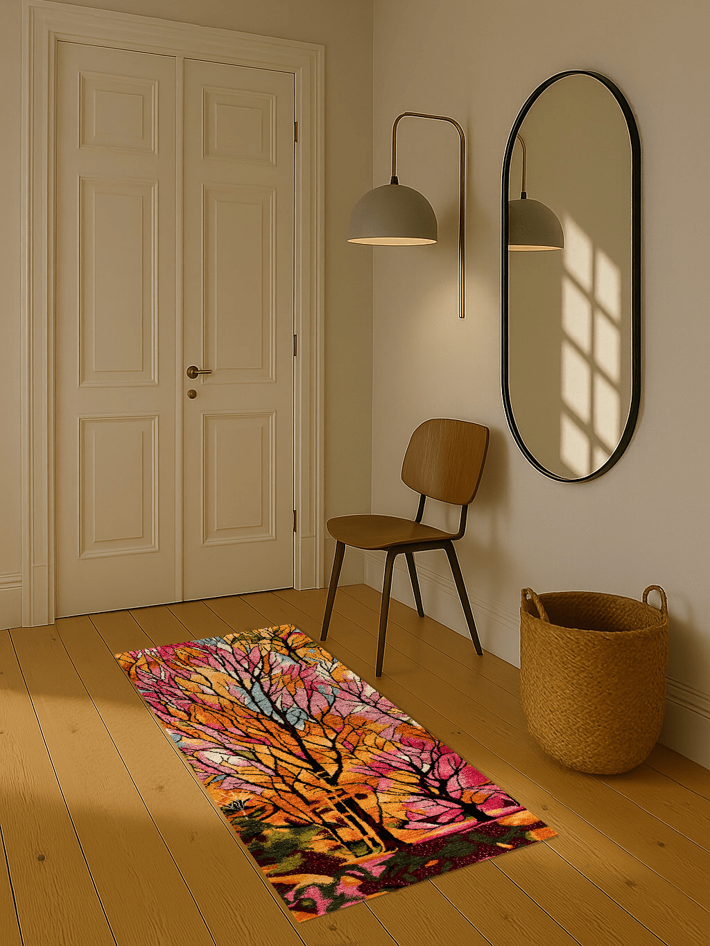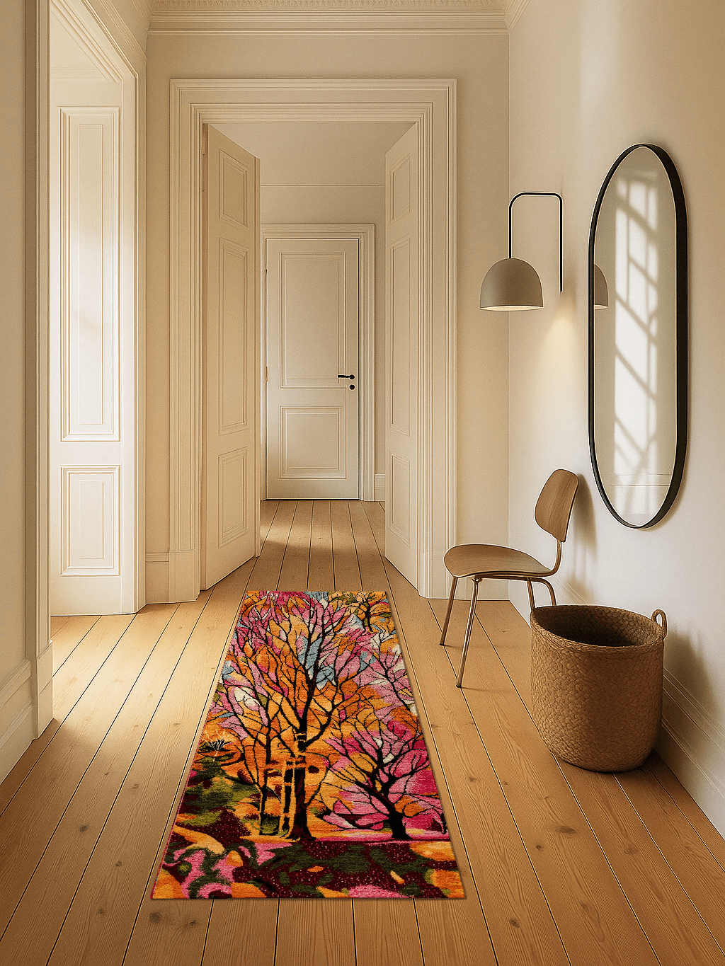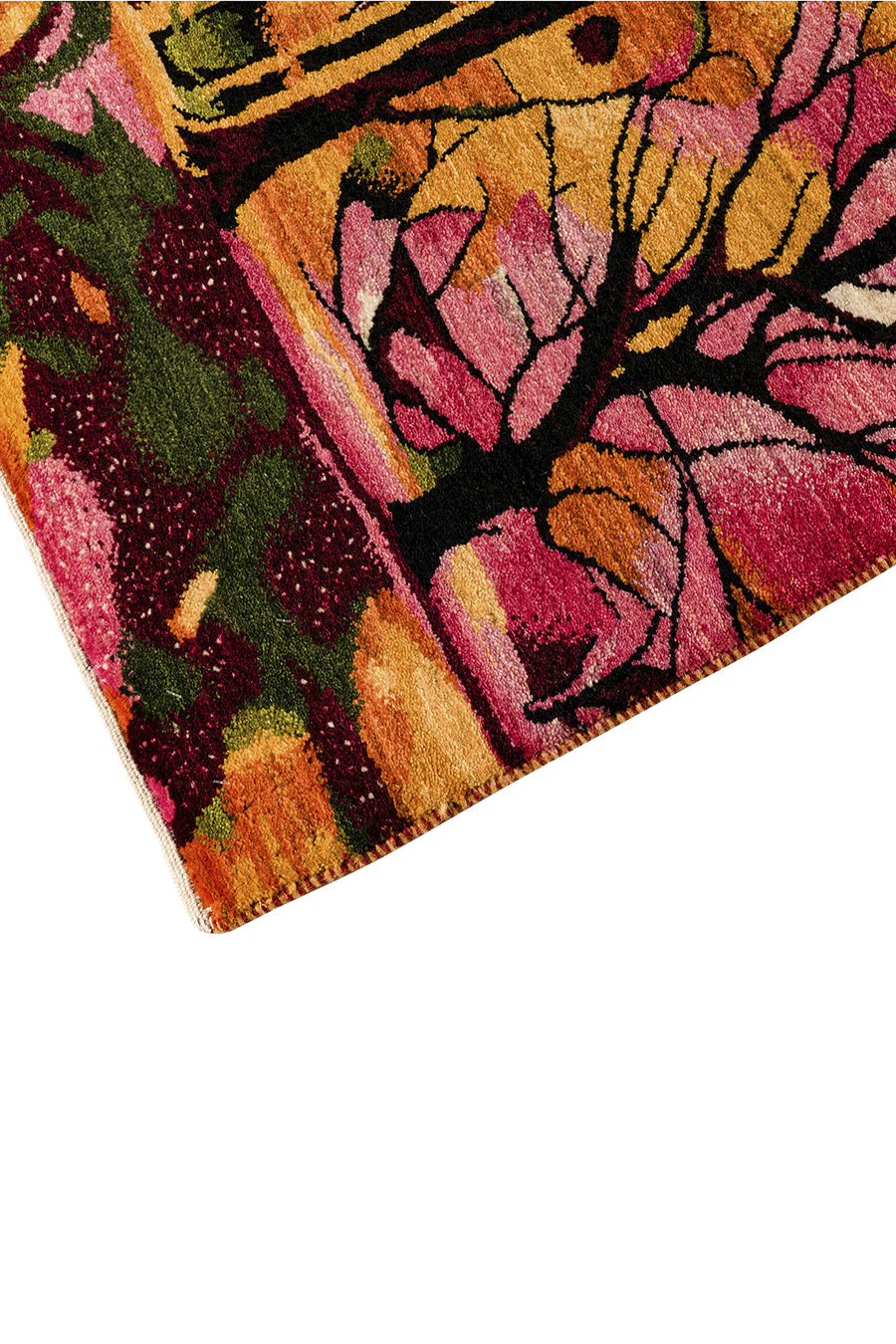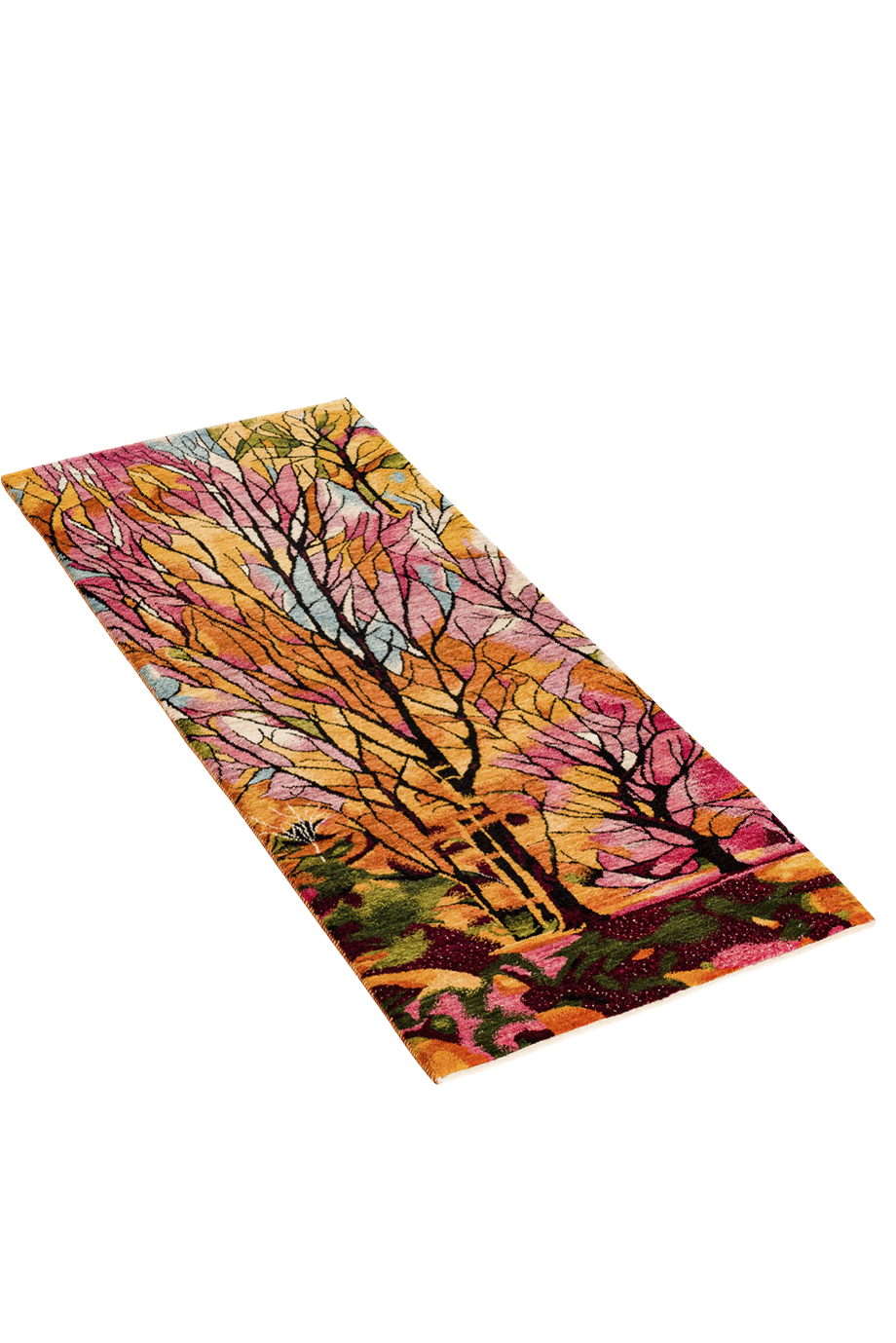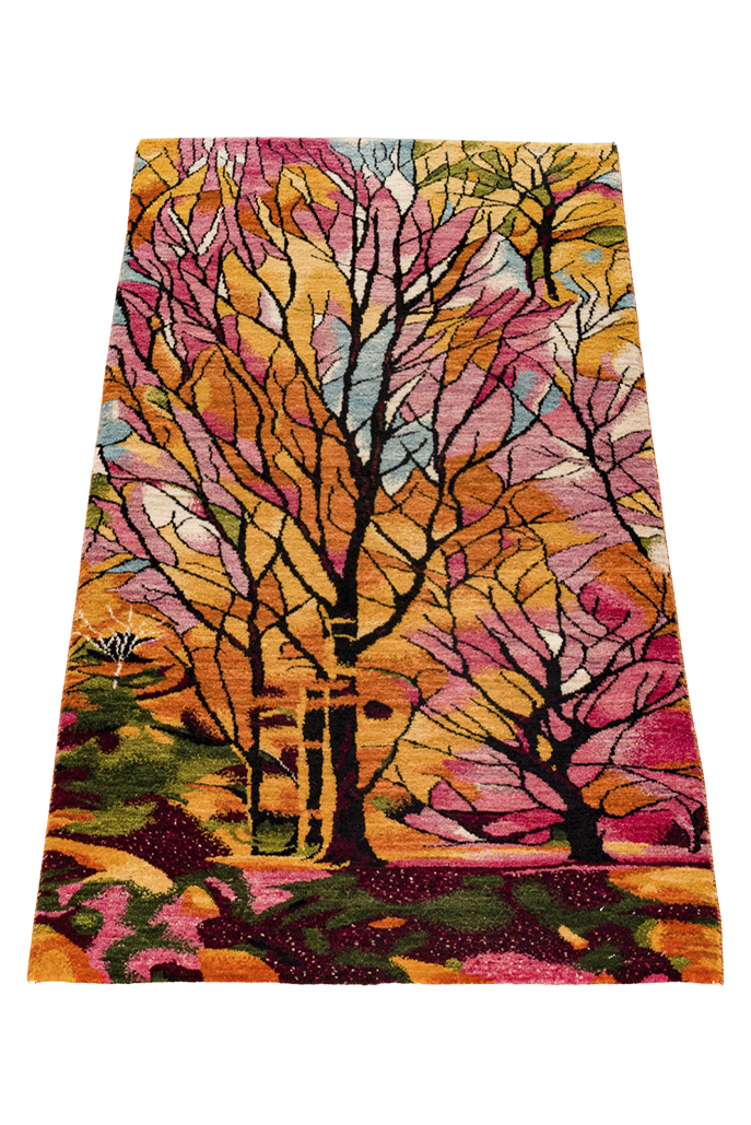 Erleben Sie die Magie des Frühlings mit diesem kunstvollen Gabbeh-Läufer, der mit leuchtenden Farben und filigranen Baumstrukturen begeistert. Wie ein sonnendurchfluteter Wald entfalten sich kräftige Orange-, Rosa-, Grün- und Goldtöne. Handgeknüpft aus feinster, reiner Schurwolle und ausschließlich mit Naturfarben gefärbt, vereint dieser Läufer traditionelle Handwerkskunst mit moderner Designästhetik. Die weiche, dichte Oberfläche sorgt für höchsten Laufkomfort, während die hochwertigen Materialien eine beeindruckende Langlebigkeit garantieren. Ein echtes Unikat für anspruchsvolle Wohnräume.