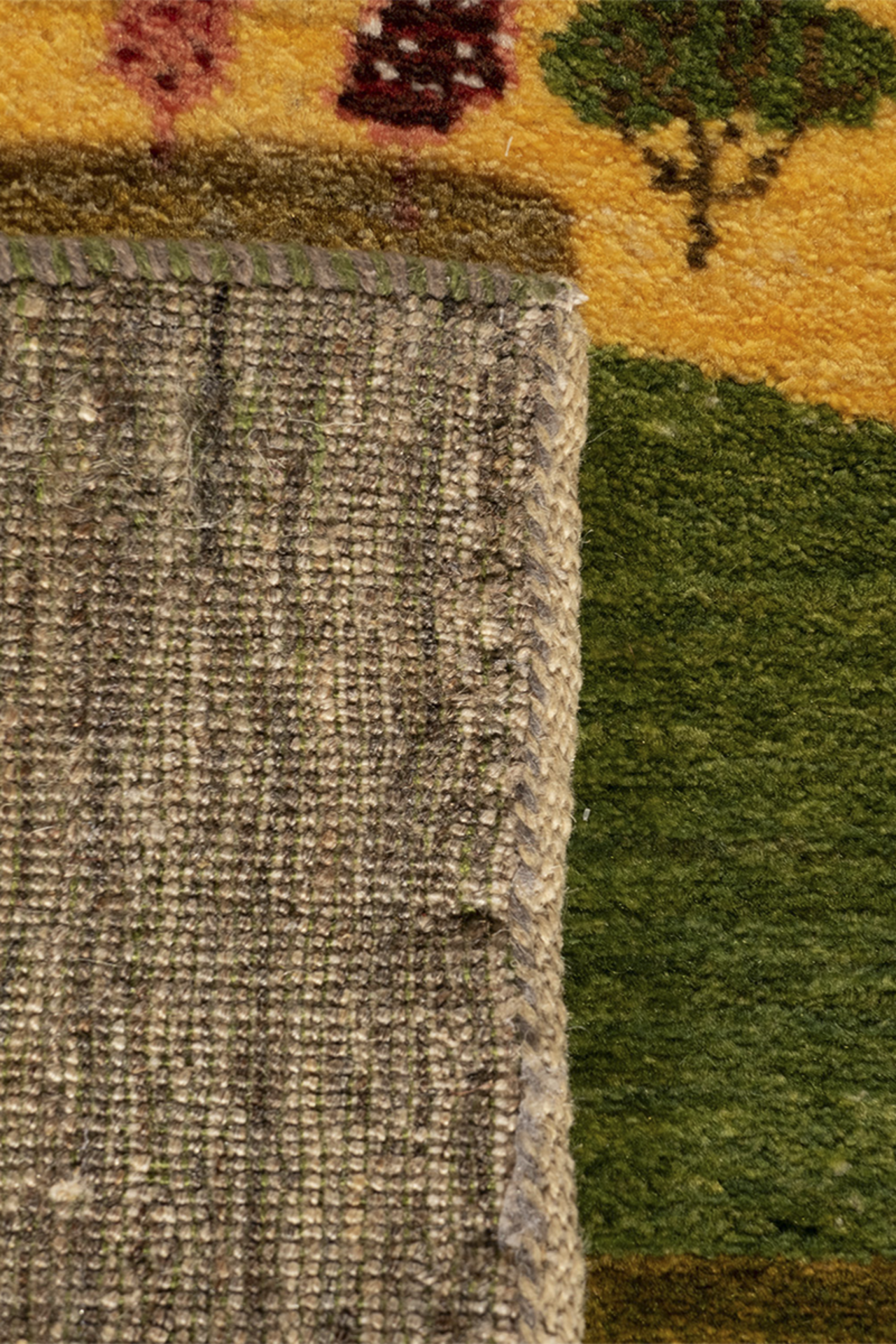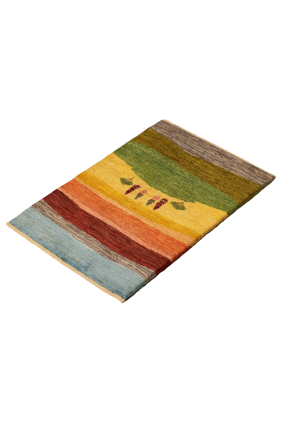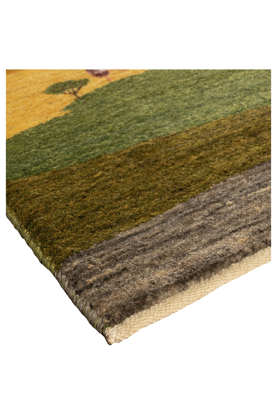 Das Design des Teppichs zeigt eine bunte Hügellandschaft, die in verschiedenen Farben dargestellt wird. Im Zentrum der Szene befindet sich eine kleine Baumoase, die einen friedlichen und naturverbundenen Eindruck vermittelt. Nomadenteppiche sind ein wahrer Ausdruck der Kunst und Seele der Nomadenstämme, die noch immer im Zagros-Gebirge der Fars-Region leben. Die Wolle ist mit natürlichen Farbstoffen aus Wurzeln und Pflanzen gefärbt, was dem Teppich seine warme und authentische Ausstrahlung verleiht.